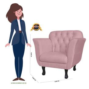 A Poltrona Dália tem um design diferenciado, feito com materiais de alta qualidade e resistência, madeira de eucalipto e percintas elásticas, pés madeira, com enchimentos em espuma D-26. Possui um design maravilhoso, cheio de charme e beleza, para complementar o seu espaço, podendo ser usada em vários ambientes como Recepções, Sala de Estar, Sala De Jantar, Escritórios, Consultórios, Áreas De Leitura, entre outros. Modelo do encosto com detalhe capitonê, dando um requinte de perfeição ao seu ambiente.