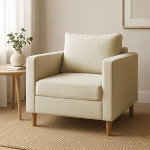 POLTRONA DECORATIVA HELENA A Poltrona Helena é a escolha perfeita para quem busca conforto com um toque de sofisticação. Seu design moderno, com encosto levemente inclinado e braços arredondados, proporciona uma experiência acolhedora. Revestida com tecido de alta qualidade, ela se adapta a diversos estilos de decoração. Ideal para salas de estar, quartos ou aquele cantinho especial de leitura.   Medidas:- Altura total: 82cm- Largura total: 82cm- Profundidade: 80cmInformações técnicas:- Assento fixo- Almofada do encosto solta- Tecido Linho- Estrutura: Madeira eucalipto- Enchimento da almofada: Fibra siliconada- Espuma: D23- 04 Pés de madeira de 12 cm- Peso suportado: 160kg   Garantia: 90 dias após o recebimento do produto.Instruções de Limpeza: Utilizar um pano limpo e seco. Não limpar com escovas ou produtos abrasivos.Observações importantes:- As imagens são meramente ilustrativas, não acompanham objetos de decoração e eletros;- As cores dos produtos podem sofrer alterações dependendo do seu monitor ou lote do tecido.- Todos os produtos vão embalados com total segurança;- Confira a embalagem e o produto no ato da entrega, caso o produto esteja avariado recuse imediatamente, coloque uma observação no verso da nota.- Não nos responsabilizamos no ato da entrega por montagens, desmontagens, instalações de produtos, nem utilização de guinchos ou equipamentos similares para acesso a pisos superiores em apartamentos.- Confira as dimensões do produto no momento da compra e certifique-se de que passará normalmente por escadas, elevadores, portas e corredores. Observando as orientações acima, evita-se futuros desagrados ou imprevistos com a entrega do produto.A montagem do produto é de responsabilidade do comprador, não efetuamos a montagem do produto.