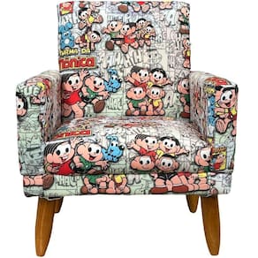 Seu design elegante e funcional inclui pés palito em acabamento castanho de 15 cm, que acrescentam um toque de estilo retrô, além de proporcionar estabilidade e . A poltrona suporta até 60 kg, ideal para acomodar confortavelmente crianças em diferentes faixas etárias.