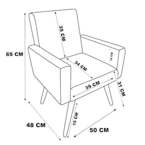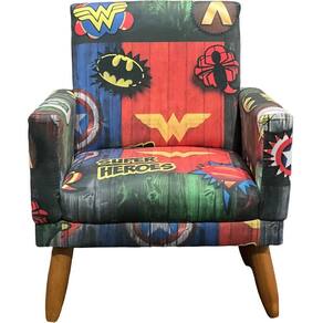 Seu design elegante e funcional inclui pés palito em acabamento castanho de 15 cm, que acrescentam um toque de estilo retrô, além de proporcionar estabilidade e . A poltrona suporta até 60 kg, ideal para acomodar confortavelmente crianças em diferentes faixas etárias.