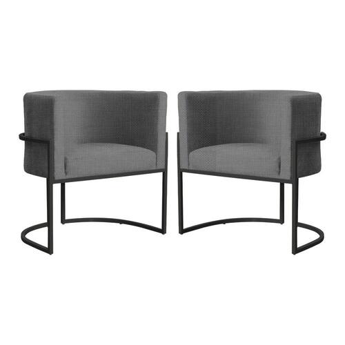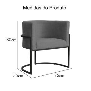 Kit 2 Poltronas Decorativa Luana Linho Cinza Base Preta Mz Decor