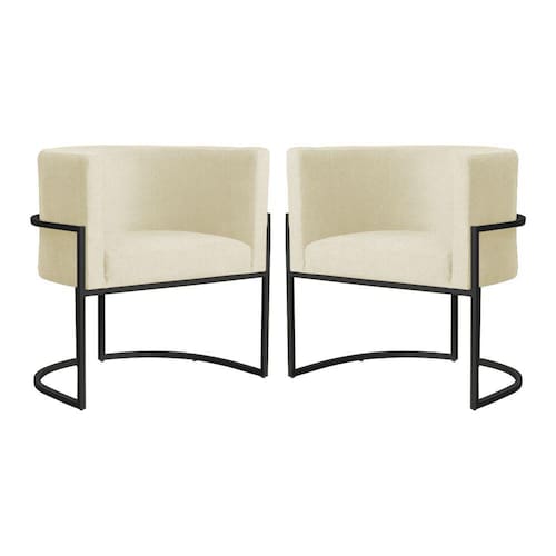 Kit 2 Poltronas Decorativa Luana Suede Marfim Base Preta Mz Decor - Bege Claro