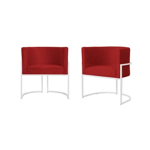 Kit 2 Poltronas Decorativa Luana Suede Vermelho Base Branca Ms Decor