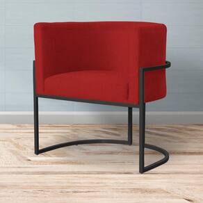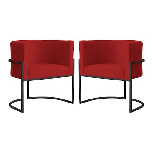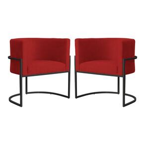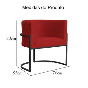 Kit 2 Poltronas Decorativa Luana Suede Vermelho Base Preta Mz Decor