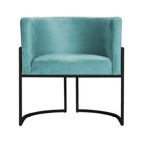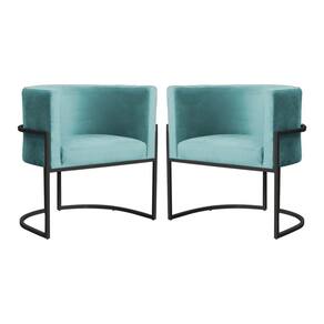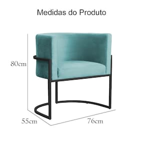Kit 2 Poltronas Decorativa Luana Veludo Azul Tifany Base Preta Mz Decor