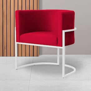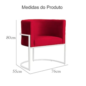 Kit 2 Poltronas Decorativa Luana Veludo Vermelho Base Branca Ms Decor
