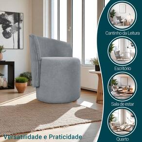 Perguntas Frequentes: - Como calcular o valor de envio? O valor de envio é calculado automaticamente com base no CEP registrado. - Quais opções de tecidos estão disponíveis para este produto? Ele está disponível em tecido Suede. - Qual é a capacidade de peso? O produto suporta até 120 kg.