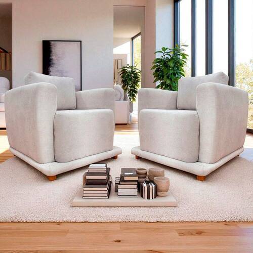 Kit 2 Poltronas Decorativa Luxo Para Sala Recepção Escritório Confortável Bridge Boucle Premium - Bege