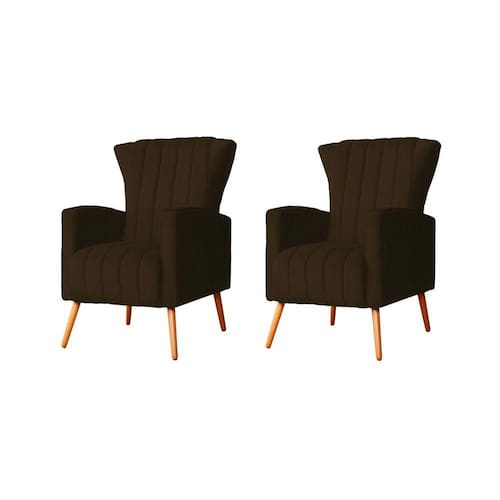Kit 2 Poltronas Decorativa Melinda Suede Marrom Pés Madeira Ms Decor
