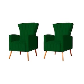 Kit 2 Poltronas Decorativa Melinda Suede Verde Pés Madeira Ms Decor