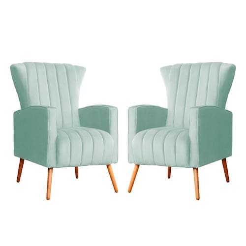 Kit 2 Poltronas Decorativa Melinda Veludo Acqua Pés Madeira Mz Decor - Verde Claro