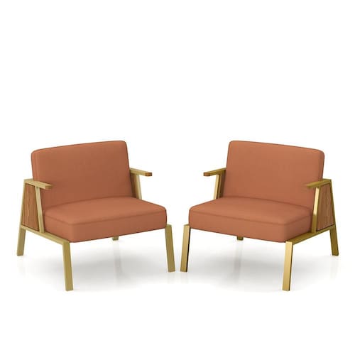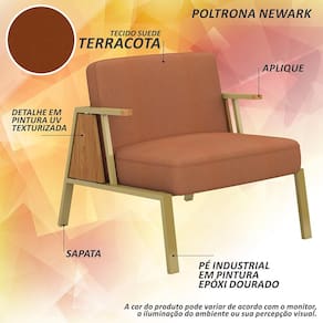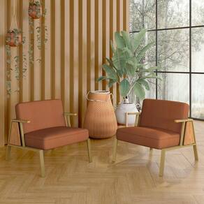 Kit 2 Poltronas Decorativa Newark Dourado/cinamomo/terracota - M.a - Laranja