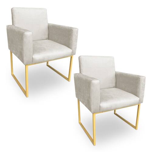 Kit 2 Poltronas Decorativa Nina Suede Base Metálica Industrial Dourado - Pallazio - Bege