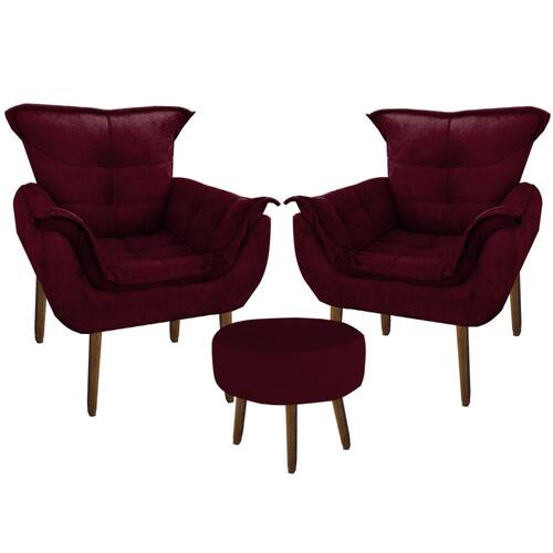 Kit 2 Poltronas Decorativa Opala com Puff Redondo Suede