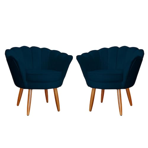 Kit 2 Poltronas Decorativa para Sala de Estar Charm Suede Azul Marinho - Montanaris Decor chegou essa incrível novidade para você. Oferece um conforto incrível e deixa o seu espaço mais elegante com um design extremamente sofisticada ideal para salas, quartos, escritórios, salas de recepção e qualquer cantinho que esteja pedindo um toque de sofisticação. Seu encosto possui detalhes de costura e formato que imita pétala de flor. Tem assento e encosto com almofada fixa, feita em madeira resistente e ecológica altamente indicada para Poltronas.