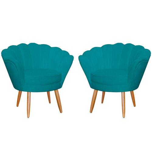 Kit 2 Poltronas Decorativa para Sala de Estar Charm Suede Azul Turquesa - Montanaris Decor