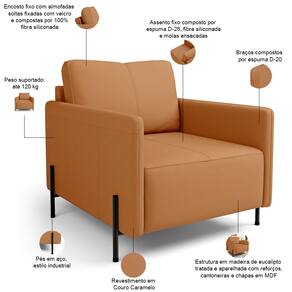 Seus pés metálicos em estilo industrial conferem não somente beleza, mas também um charme contemporâneo que se destaca em sala de estar, living, escritório ou até mesmo no seu cantinho de leitura. Confortável e versátil, a poltrona industrial Domani harmoniza com diversos estilos de decoração, sendo a escolha ideal para quem quer ousar sem abrir mão do conforto. Transforme seu lar em um verdadeiro espaço de estilo e aconchego com a Poltrona Decorativa Domani.