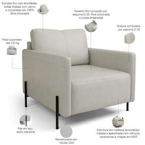Relaxe com o Kit 2 Poltronas Decorativa Domani L06 Veludo Grafite Lyam Decor, ideal para compor sala de estar, escritório ou área de leitura com conforto. O conjunto oferece assento aconchegante e boa ergonomia para uso diário, com capacidade de até 120 kg por poltrona. Estrutura em madeira e MDF, assento com espuma, fibra siliconada e molas ensacadas, além de encosto com almofadas soltas, resultam em apoio agradável para momentos de descanso. Os pés em aço de estilo industrial e o revestimento em veludo grafite garantem visual moderno que harmoniza com diferentes estilos de decoração. É uma opção versátil para quem busca unir praticidade, conforto e design em ambientes internos residenciais
