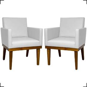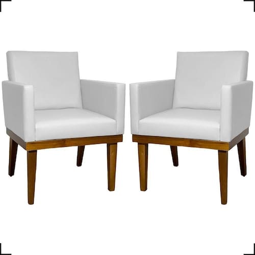 Kit 2 Poltronas Decorativa Para Sala Recepção Consultório Escritório Base Em Madeira Divine Corino