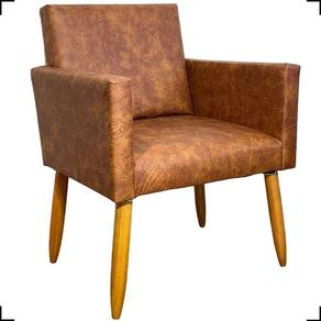 Produzida com estrutura em madeira de eucalipto, a Poltrona Nina oferece alta resistência e durabilidade, enquanto os pés palito em tom castanho proporcionam um visual moderno com inspiração retrô.