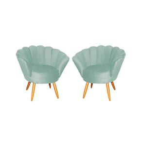 Kit 2 Poltronas Decorativa Pétala Veludo Acqua Pés Madeira Mz Decor - Rosa