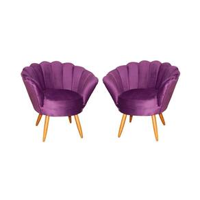 Kit 2 Poltronas Decorativa Pétala Veludo Roxo Pés Madeira Mz Decor