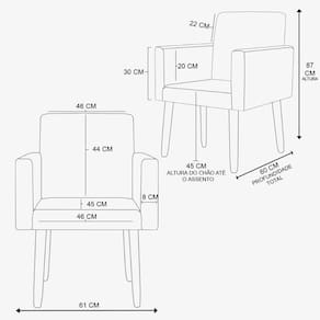 Transforme o seu ambiente com o Kit 2 Poltronas Nina + Puff Pé Palito. Este kit é a combinação perfeita de conforto, durabilidade e um design moderno, ideal para mesas de jantar, áreas de estar e até mesmo ambientes comerciais.Especificações do produtoTecido em Suede, 100% poliésterEspuma D-23 com Alta densidadePercintas Elásticas que oferecem suporte adicionalEstrutura de madeira eucalipto proveniente de reflorestamentoInformações Técnicas da PoltronaAltura: 87 cmLargura: 61 cmProfundidade: 60 cmPeso: 9,5 kgCapacidade de Suporte: O produto suporta até 100 kgProduto embaladoAltura: 61 cmLargura: 62 cmProfundidade: 55 cmPeso: 24 kgObservações ImportantesO produto tem 3 meses de garantia contra defeitos de fabricaçãoProduto possui uma embalagem segura, feita para evitar danos durante o transporteO Produto é entregue montado