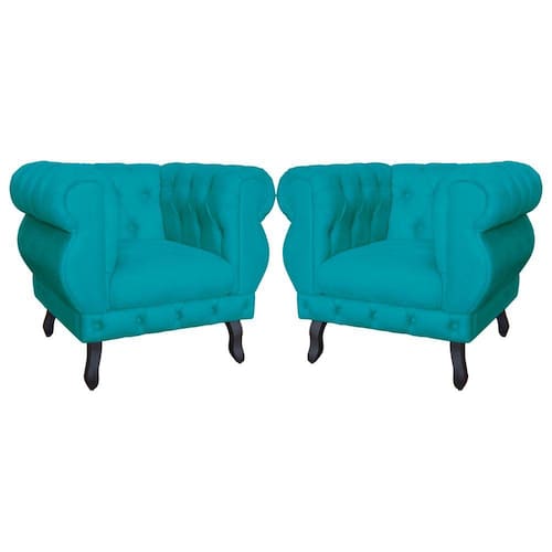 Kit 2 Poltronas Decorativa Sala Recepção Maya Suede Azul Turquesa LM DECOR