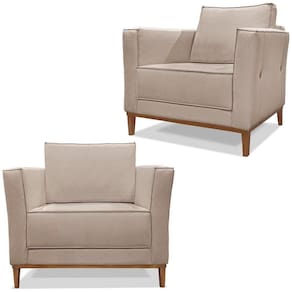 Kit 2 Poltronas Decorativas Balli Pes Madeira Linho Areia Ezz Areia