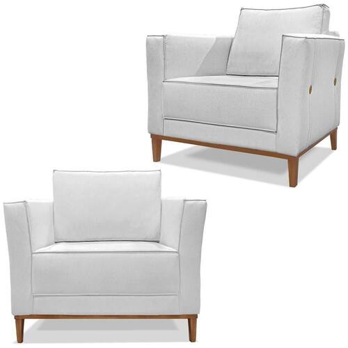 Kit 2 Poltronas Decorativas Balli Pes Madeira Linho Grigio Ezz Grigio