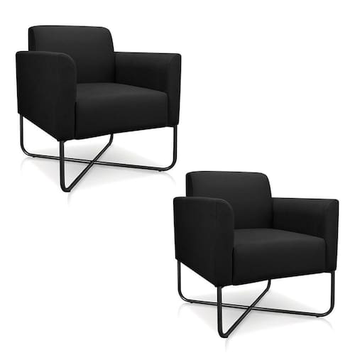 Às vezes, um único móvel pode trazer todo o requinte e sofisticação que sua casa precisa. Essa é exatamente a função da Poltrona Maressa, veja só!Isso mesmo! Se uma Poltrona Decorativa já é boa, imagina duas? Por isso, apresentamos a você o Kit 2 Poltronas Maressa Suede Preto da Ibiza! São produtos super versáteis que podem complementar seu lar proporcionando conforto e elegância na medida certa. Esses itens lindos podem fazer parte da sala de estar, quarto, escritório ou ambientes corporativos, afinal o design moderno combina com qualquer ambiente. Além desse estilo incrível, ela possui estrutura em madeira de eucalipto e espuma de alta qualidade, tudo para garantir durabilidade e resistência. Ah, conta com base x preta estilo industrial, assento reforçado com percintas elásticas e são revestidas em tecido suede que transmitem maciez ao toque. Ou seja, poltronas para sala imperdíveis!Não vai ficar fora dessa né? Compre e garanta já a sua!Dimensões do ProdutoLargura: 64 cm.Altura: 76 cm.Profundidade: 64 cm.Peso: 14 Kg.Outras medidas:Altura do encosto: 35 cm.Largura do assento: 47 cm.Altura do assento: 20 cm.Profundidade do assento: 47 cm.Altura do assento ao chão: 45 cm.Altura dos pés: 30 cm.Altura do chão ao braço: 18 cm.Altura interna do braço: 18 cm.Características do ProdutoMaterial da Estrutura: Madeira reflorestada de eucalipto.Material da Espuma: Espuma Prorelax D-23.Peso Suportado: 120 kg cada.Revestimento: Suede.Tipo de Encosto: Fixo.Tipo de Assento: Fixo.Quantidade de Lugares: 2 Lugares.Possui Pés: Sim.Material dos Pés: Metal.Tipo de Pés: Base X.Possui Rodízios: Não.Diferenciais:- Design moderno.- Produto versátil.Sistema de Montagem: O produto é enviado montado.Volumes: 2 Volumes.Conteúdo da Embalagem: 2 Poltronas.Garantia do Fabricante: 90 dias contra defeito de fabricação.Montagem: O produto é enviado montado.Recomendação de Limpeza: Utilize pano levemente úmido.Observações importantes:- Produto para uso residencial em ambiente interno, não devendo ficar exposto diretamente ao sol, calor e umidades excessivas.- Pode haver alguma diferença de tonalidade entre a imagem e o produto real, por conta do tratamento de imagens e a calibração de cores do seu monitor.- As imagens são meramente ilustrativas, não acompanham objetos de decoração e eletrônicos.- Confira o estado da embalagem, não devendo assinar o comprovante em caso de danos.- Não asseguramos, no ato da entrega, por subir escadas/elevadores, pelo transporte por guincho em apartamentos ou montagem, desmontagem e instalações. Eventuais despesas são por conta do comprador.- Confira as dimensões do produto e certifique-se de que passará normalmente por supostos elevadores, portas, escadas e/ou corredores de sua residência.