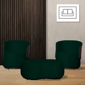 Kit 2 Poltronas Decorativas e 1 Puff Grande Design Orgânico Beatriz Suede Composê Corino Marrom - Estopar - Verde