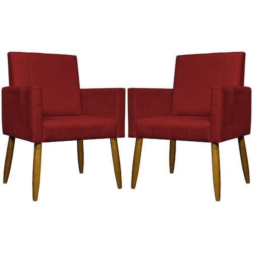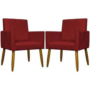 Kit 2 Poltronas Decorativas Para Sala Mari Suede Pé Palito - Vermelho, Suede