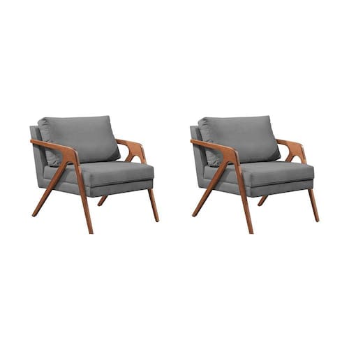 Kit 2 Poltronas Decorativas Mona Premium Base Madeira Maciça Veludo Cinza