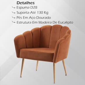Kit 2 Poltronas Decorativas Pes Aço Dourado 7049 Veludo, ela é perfeita para seus melhores momentos, na leitura, no descanso, nas conversas com a família e amigos. Estrutura em Madeira de Eucalipto e Aço Carbono Dourado com pintura em acabamento (Fosco). Compostas por encosto e assento estofados com espuma D-28 de altíssima qualidade e procedência, encosto em formato de Pétala que irá deixar sua decoração ainda mais bela, revestimento em tecido Veludo e conta com Pés de Aço Carbono Dourado. Suporta até 130 Kg cada. Ela é simplesmente perfeita para qualquer espaço ou ambiente. Este móvel chegará na sua casa separado em 02 volumes.