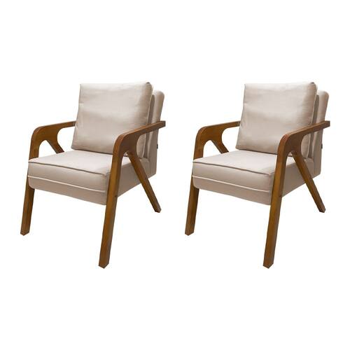 Kit 2 Poltronas Decorativas Pés em Madeira Maciça Monaco Veludo Bege
