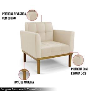 Material da Estrutura: Madeira de Eucalipto ReflorestamentoAssento: Espuma D-23Encosto: Espuma D-23Material dos Pés: Base Fixa em MadeiraRevestimento: PUPeso Suportado: 120kgConteúdo da Embalagem: 2 PoltronasNecessita de Montagem: Somente dos pés Instruções/Cuidado: Evitar exposição ao sol, para que o produto não sofra alterações na cor do tecido. Não limpar com escovas ou produtos abrasivos.