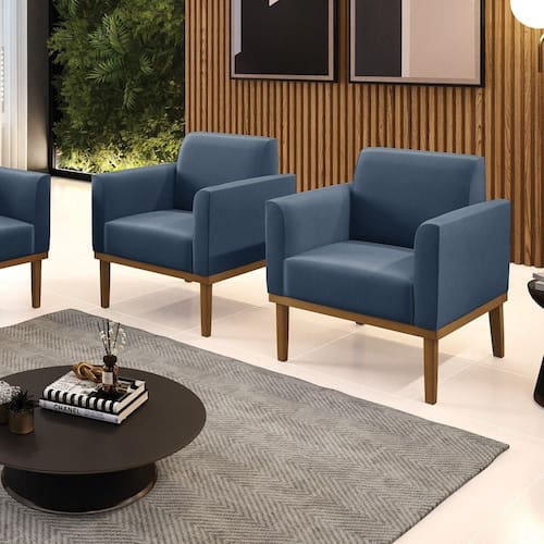 Material da Estrutura: Madeira de Eucalipto ReflorestamentoAssento: Espuma D-23Encosto: Espuma D-23Material dos Pés: Base Fixa em MadeiraRevestimento: SuedePeso Suportado: 120kgConteúdo da Embalagem: 2 PoltronasNecessita de Montagem: Somente dos pés Instruções/Cuidado: Evitar exposição ao sol, para que o produto não sofra alterações na cor do tecido. Não limpar com escovas ou produtos abrasivos.