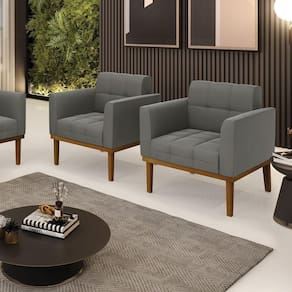 Material da Estrutura: Madeira de Eucalipto ReflorestamentoAssento: Espuma D-23Encosto: Espuma D-23Material dos Pés: Base Fixa em MadeiraRevestimento: SuedePeso Suportado: 120kgConteúdo da Embalagem: 2 PoltronasNecessita de Montagem: Somente dos pés Instruções/Cuidado: Evitar exposição ao sol, para que o produto não sofra alterações na cor do tecido. Não limpar com escovas ou produtos abrasivos.