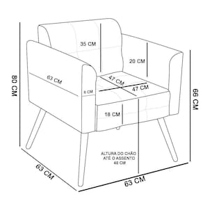 Material da Espuma: Espuma D-28 no assento e encosto e D-23 nos braços.