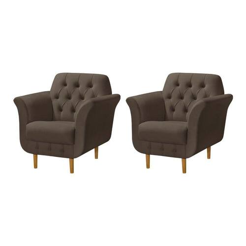 Kit 2 Poltronas Decorativas Pés Palito Em Madeira Playa Veludo Marrom - Cor: Marrom A poltrona decorativa Playa é uma verdadeira obra-prima em design e conforto. Com braços arredondados, é a escolha perfeita para trazer um toque de elegância e sofisticação para qualquer ambiente.CaracterísticasTipo: Poltrona Modelo: Playa Tecido: VeludoCor: MarromDIMENSÕES DO PRODUTOAltura: 88cmLargura: 86cmComprimento: 75cmInformações adicionais:- Materiais da estrutura: Madeira ecológica, MDF- Material dos pés: Madeira Maciça ecológica - Cor da madeira: - Requer montagem: Sim- Limpeza: Não usar produtos abrasivos, usar apenas peno seco e limpo.- Peso máximo suportado: 100kg- Garantia: 3 Meses à partir da emissão da ÇÃOAS IMAGENS SÃO MERAMENTE ILUSTRATIVAS E PODEM SOFRER VARIAÇÕES DE COR E PEQUENOS DETALHES DE ACORDO COM O SEU MONITOR, ILUMINAÇÃO DO AMBIENTE E ATÉ MESMO A SUA PERCEPÇÃO 2 Poltronas Decorativas PÃs Palito em Madeira Playa Veludo Marrom Marca: Villa Casa Decor