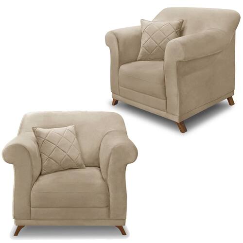 Modelo: Kit 2 Poltronas Decorativas Retrô Polo Suede Pés: Madeira Maciça Assento: Fixo com espuma D23 e plumante em silicone Encosto: Fico com percintas elásticas italiana, espuma HR28 e plumante em silicone Sistema de Montagem: Necessário fixar os pés