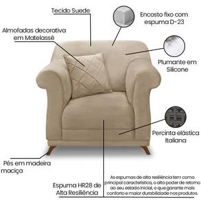 O Kit 2 Poltronas Polo é uma ótima escolha para proporcionar o máximo de conforto e beleza ao seu espaço. Com um toque retrô clássico, a poltrona possui 100cm de largura e revestimento em suede aveludado, que oferece uma textura suave e agradável ao toque. Os pés em madeira maciça garantem durabilidade e resistência. Seu encosto fixo é confeccionado em espuma D23 e plumante de silicone, proporcionando suporte e maior comodidade ao uso. O assento fixo é composto por percintas elásticas italianas e espuma HR28 de alta resiliência, que se destaca pelo retorno rápido à sua forma, aliando conforto e longa vida útil ao produto. Acompanha charmosa almofada decorativa com enchimento em fibra de silicone e acabamento em matelassê, agregando ainda mais estilo e aconchego. Estes móveis chegarão em sua casa separados em 02 volumes.