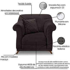 O Kit 2 Poltronas Polo é uma ótima escolha para proporcionar o máximo de conforto e beleza ao seu espaço. Com um toque retrô clássico, a poltrona possui 100cm de largura e revestimento em suede aveludado, que oferece uma textura suave e agradável ao toque. Os pés em madeira maciça garantem durabilidade e resistência. Seu encosto fixo é confeccionado em espuma D23 e plumante de silicone, proporcionando suporte e maior comodidade ao uso. O assento fixo é composto por percintas elásticas italianas e espuma HR28 de alta resiliência, que se destaca pelo retorno rápido à sua forma, aliando conforto e longa vida útil ao produto. Acompanha charmosa almofada decorativa com enchimento em fibra de silicone e acabamento em matelassê, agregando ainda mais estilo e aconchego. Estes móveis chegarão em sua casa separados em 02 volumes.