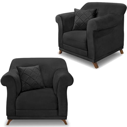 Modelo: Kit 2 Poltronas Decorativas Retrô Polo Veludo Pés: Madeira Maciça Assento: Fixo com espuma D23 e plumante em silicone Encosto: Fico com percintas elásticas italiana, espuma HR28 e plumante em silicone Sistema de Montagem: Necessário fixar os pés