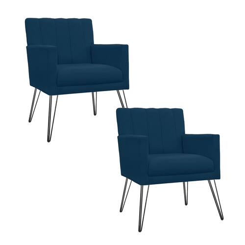 Kit 2 Poltronas Decorativas Sala de Espera Pés de Ferro Cecília Suede Azul Marinho - LM DECOR