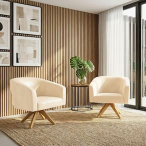 Desfrute de conforto e estilo com a poltrona D'Rossi Stella, ideal para compor ambientes aconchegantes no dia a dia. O kit com 2 poltronas decorativas giratórias em couro sintético bege oferece praticidade e um visual elegante para sala de estar ou espaços de recepção. A estrutura em madeira de eucalipto, aliada à espuma de alta densidade e ao assento com percintas elásticas, proporciona sustentação firme e uso confortável. A base giratória em madeira garante liberdade de movimento, facilitando a interação no ambiente sem precisar arrastar o móvel. Com design sofisticado e funcional, a Stella se adapta bem a diferentes estilos de decoração residencial ou corporativa.