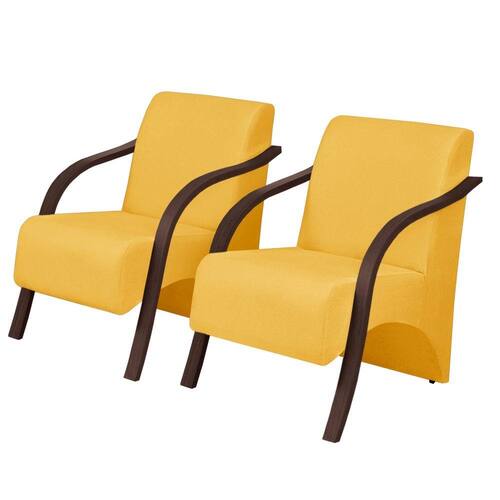 Kit 2 Poltronas Decorativas Vênus 1 Lugar Braço Pé Madeira D Salla Suede - Amarelo