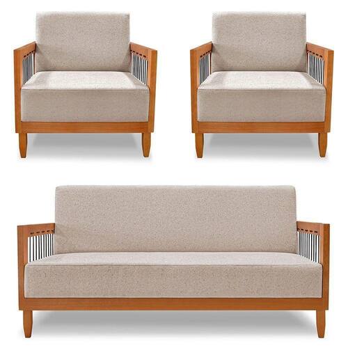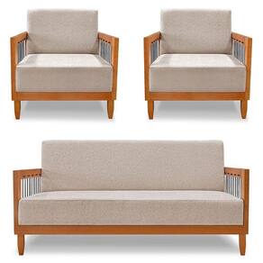 Kit 2 Poltronas E Sofá Living 2 Lugares Marilia 1,60m Linho Base Em Madeira Castanho - Pallazio Cor Areia