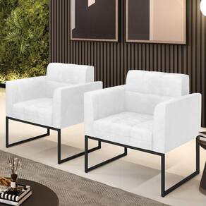 Você gosta de colecionar vários momentos memoráveis com sua família e amigos? Que tal recebê-los, com móveis de altíssima qualidade que só a D'Rossi tem? O Kit 2 Poltronas Elisa é adequado para você! Seu design retrô é a grande tendência do momento. Pode ser utilizado em diversos espaços da casa, em salas, hall de entrada, quartos, cozinhas, varanda, sacada, escritório, dentre outros. Contém as seguintes características: A estrutura é feita de madeira de Eucalipto 100% de reflorestamento, e a Base Metálica Industrial Preto, além de ser resistente e durável, suporta em média até 120 kg. Assento, encosto e braços, contém enchimento de espuma D-23 e é estofada em tecido Corano, no tom Branco, que oferece muito conforto e resistência ao sentar, com aquela sensação de maciez e aconchego. Possui também, detalhes de costura no encosto e assento, resultando em um acabamento impecável, conferindo muito mais valor e elegância ao seu espaço. Para complementar a decoração com essas lindas poltronas, a dica é utilizar mantas, almofadas ou vasinho de flor. E pronto, seu cantinho estará perfeito para descansar e relaxar! Aqui, você encontra várias opções, para que seus amigos e familiares se sintam acolhidos. Garanta já seu Kit 2 Poltronas.